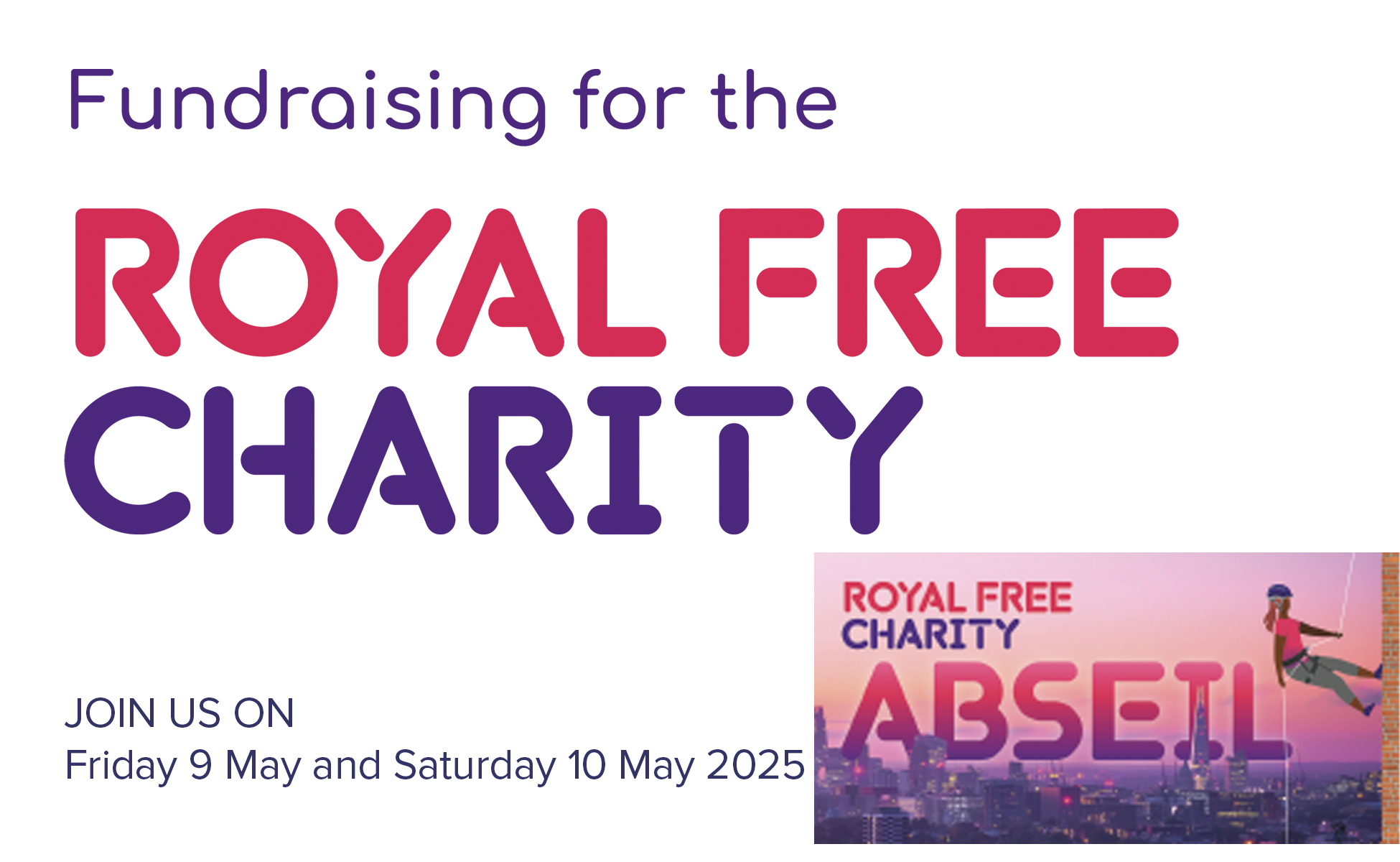 If you’d like to find out more about the Royal Free Charity abseil or about the services we provide to support the Royal Free London NHS Foundation Trust, contact: fundraising@royalfreecharity.org